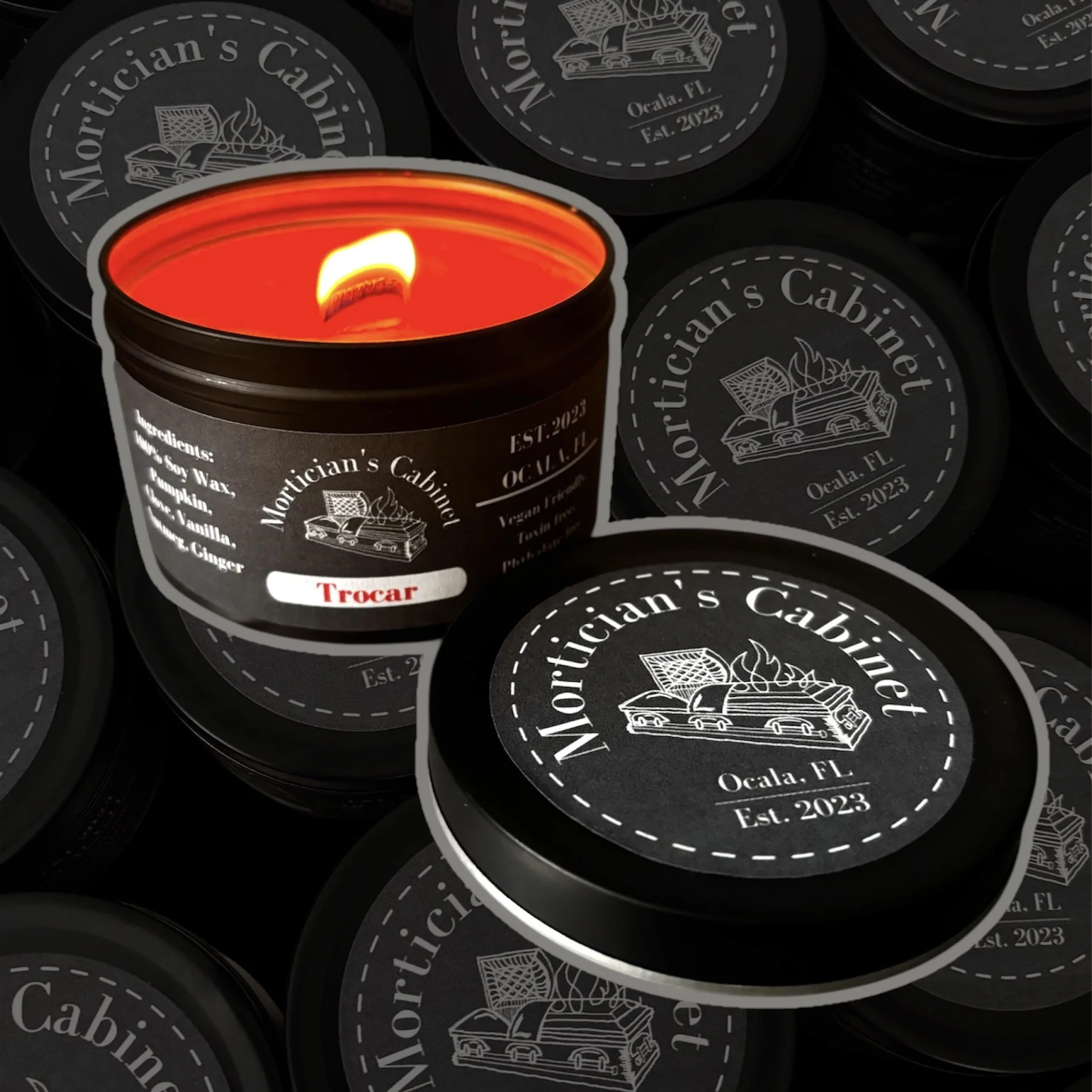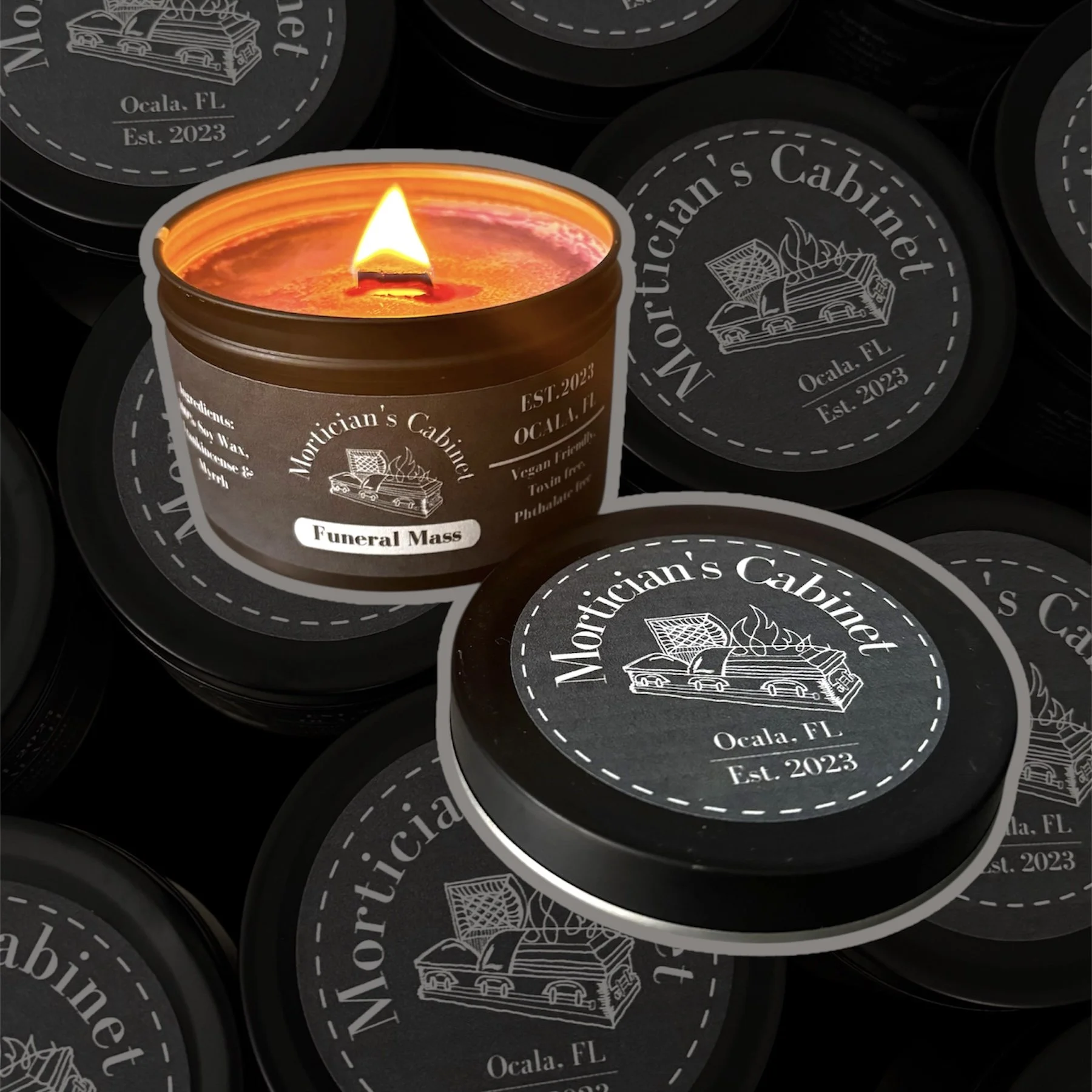 Shop Categories: All Candles Wax Melts Beard Oil All | Candles | Wax Melts | Beard Oil | Wax Melt Sampler - 12 Scents $20.00 Add To Cart Added! Cooling Board - 7 oz - Patchouli, Juniper, Cedar, Spice, Incense, Eucalyptus, Peppermint, Cypress, Sage, Camphor $17.00 Add To Cart Added! Funeral Mass - Frankincense & Myrrh - 7oz $17.00 Sold Out Sold Out Added! Vahalla - sweet orange, mandarin, cinnamon bark, eucalyptus, clove leaf, clove bud, pine, grapefruit, mentha leaf, cumin, and wheatgerm. - 7oz $17.00 Sold Out Sold Out Added! Graveyard Shift - Coffee Vanilla - 7oz $17.00 Add To Cart Added! Hearse - Cashmere Musk - 7oz $17.00 Add To Cart Added! Pallbearer - Cypress & Sage - 7oz $17.00 Add To Cart Added! Obituary - Rosemary & Lavender - 7oz $17.00 Sold Out Sold Out Added! Momento Mori - Rose & Oud - 7oz $17.00 Sold Out Sold Out Added! Embalming Fluid - Blood Orange - 7oz $17.00 Sold Out Sold Out Added! Crematory - Ginger, Cinnamon, vanilla, clove, nutmeg, chestnut - 7oz $17.00 Sold Out Sold Out Added! Trocar - Pumpkin, Clove, vanilla, nutmeg & ginger - 7oz $17.00 Add To Cart Added! Obituary- Rosemary & Lavender - 14oz $30.00 Sold Out Sold Out Added! Graveyard Shift - Vanilla & Coffee - 14 oz $30.00 Sold Out Sold Out Added! Hearse - Cashmere Musk - 14oz $30.00 Sold Out Sold Out Added! Funeral Mass - Frankincense & Myrrh - 14oz $30.00 Sold Out Sold Out Added! Pallbearer - 1oz - Beard Oil $25.00 Add To Cart Added! Smoke Break - 1oz - Beard Oil $25.00 Add To Cart Added! Valhalla - 1oz - Beard Oil $25.00 Sold Out Sold Out Added! Memento Mori wax melts - Rose & Oud $5.00 Sold Out Sold Out Added! Pallbearer wax melts - Cypress & Sage $5.00 Add To Cart Added! Obituary wax melt - Rosemary Lavender $5.00 Add To Cart Added! Graveyard Shift wax melts - Coffee Vanilla $5.00 Add To Cart Added! Hearse wax melts - Cashmere Amber $5.00 Sold Out Sold Out Added! Anubis wax melts - Egypthian Amber $5.00 Add To Cart Added! Valhalla wax melts - sweet orange, mandarin, cinnamon bark, eucalyptus, clove leaf, clove bud, pine, grapefruit, mentha leaf, cumin, and wheatgerm. $5.00 Add To Cart Added!